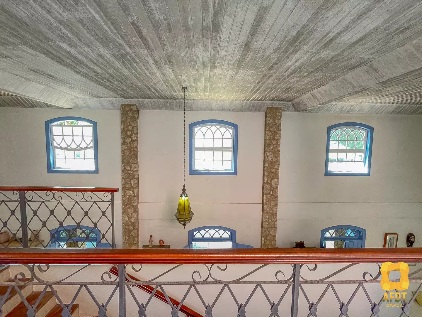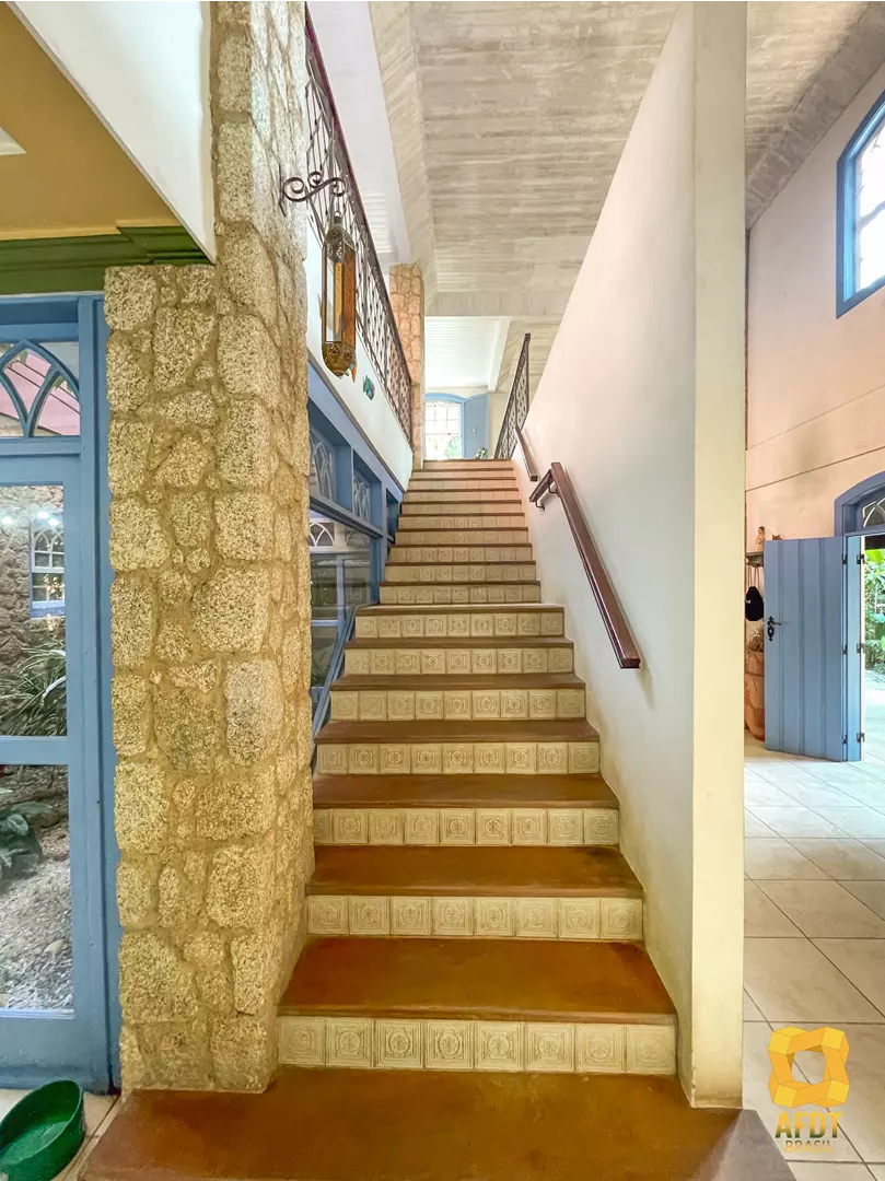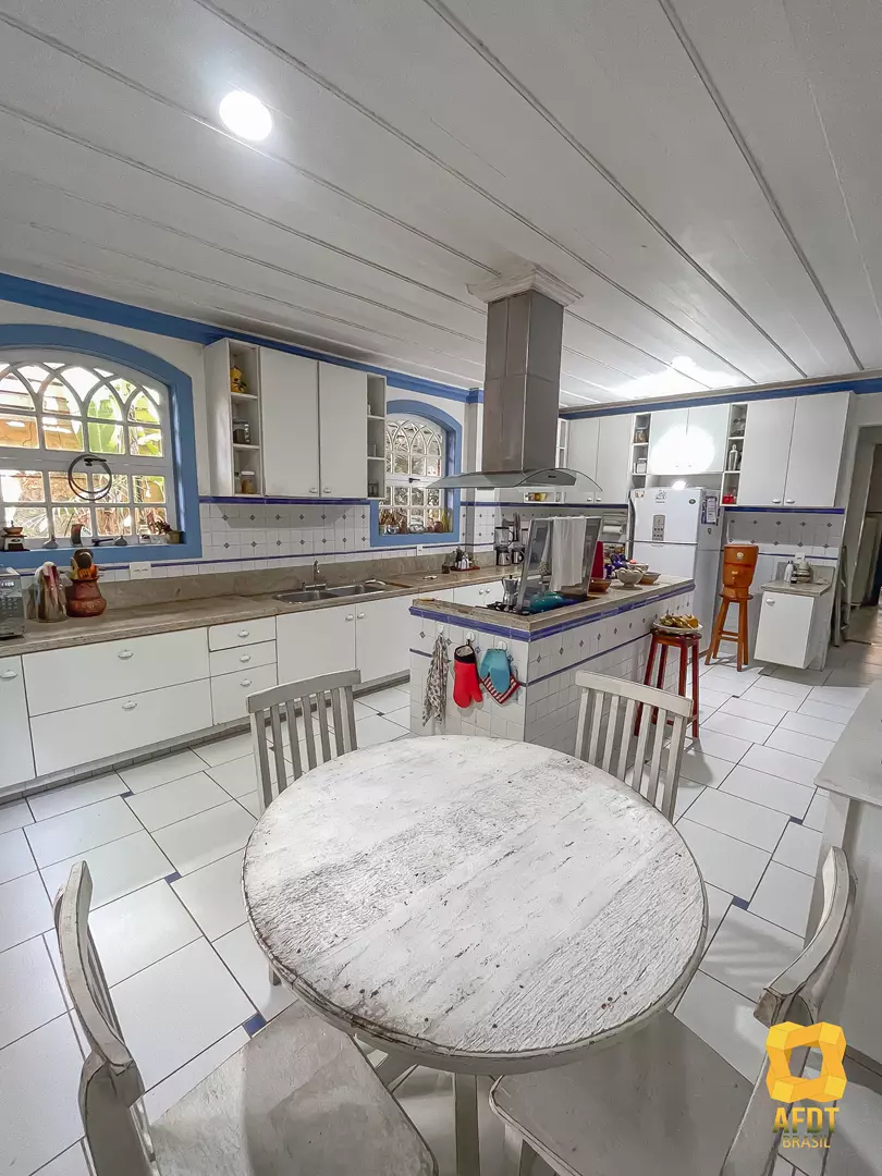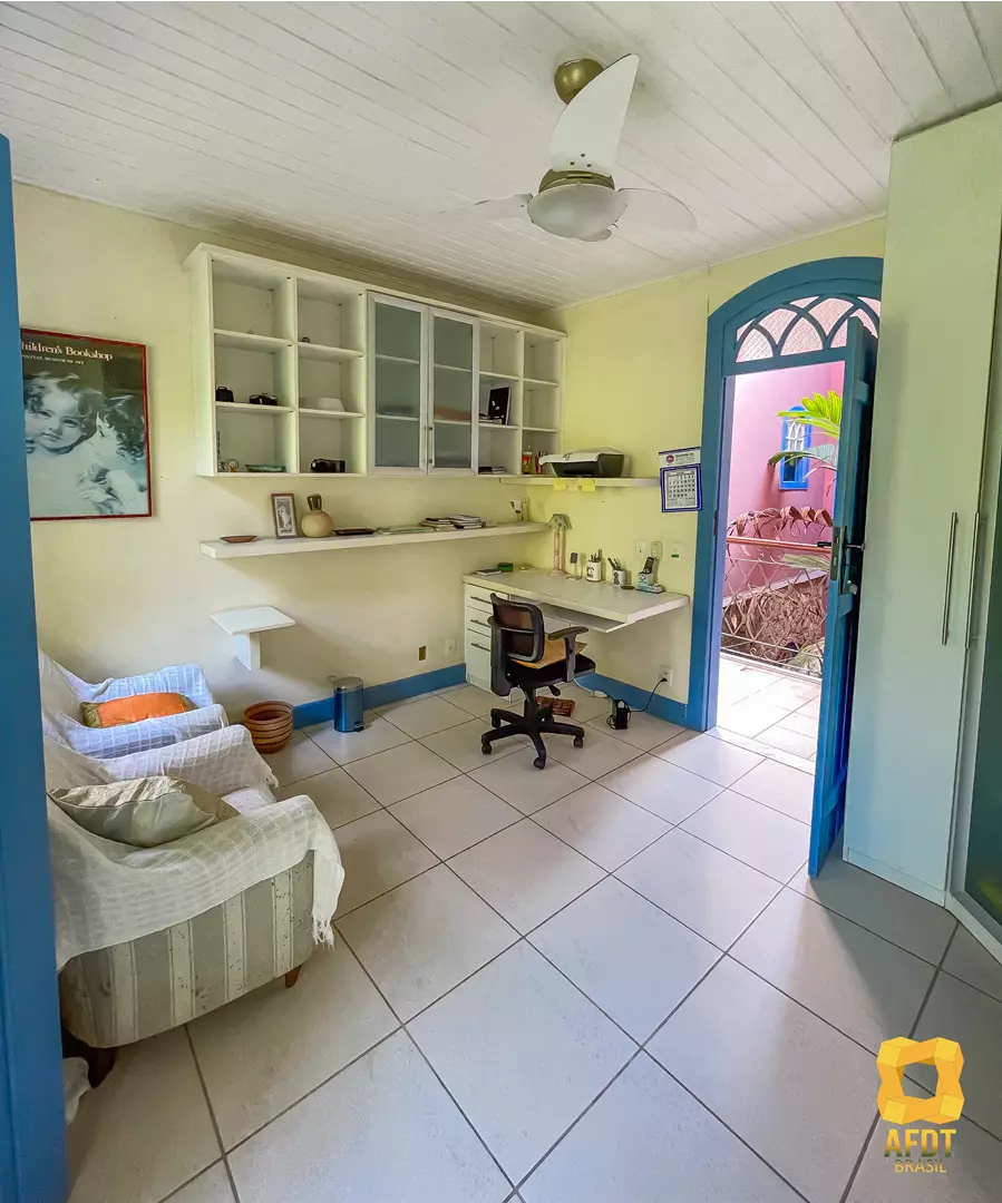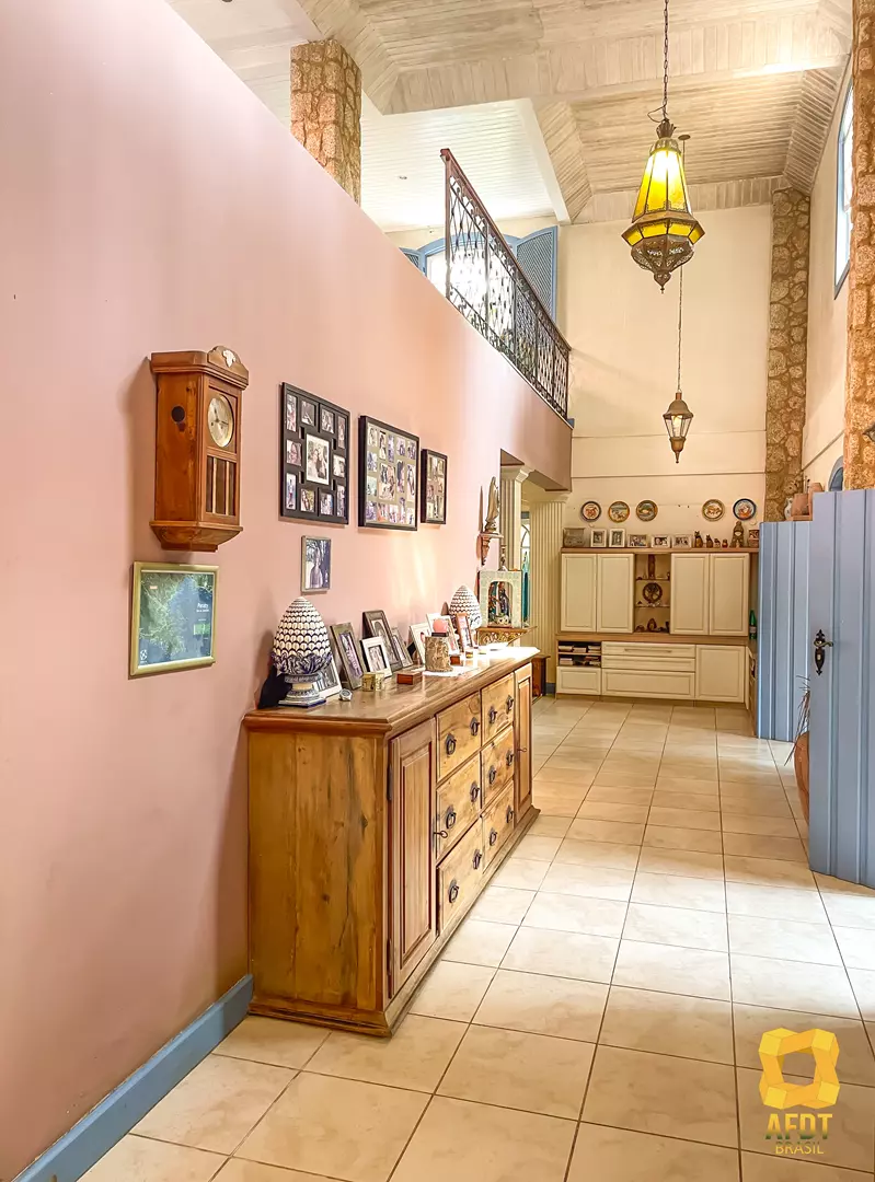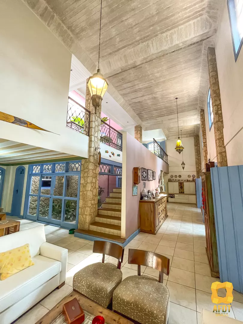 Casa tipo sobrado, 5 quartos (3 suítes), um escritório, varandas nas suítes do andar superior e no escritório, terraço na suíte master lounge com biblioteca, um lavabo, área de serviço, despensa, copa-cozinha, sala de estar, sala de jantar, sala de TV, jardim de inverno interno, hall de entrada, varanda frontal e nas laterais da casa, duas vagas de garagem, uma edícula tipo kit net (com cozinha, banheiro e varanda), jardim com árvores diversas